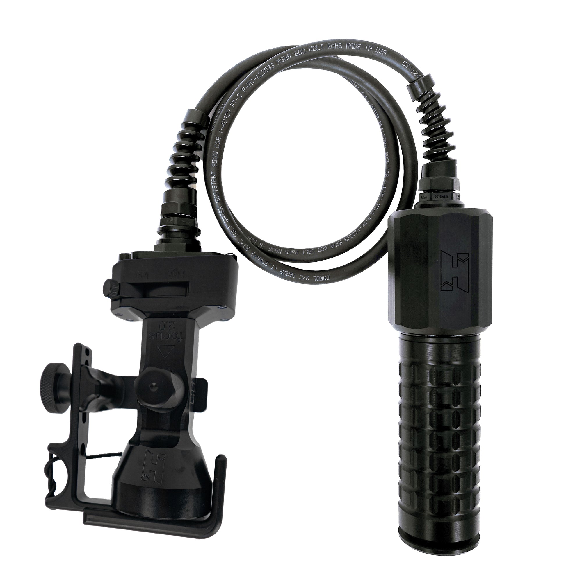 Halcyon lights are available in corded models (standard cord or E/O cord), as well as a handheld version. Standard corded lights are delivered with a standard 5.2Ah li-ion battery. Divers opting for the E/O cord will receive an industry-standard cord that may be used with the supplied cannister or larger compatible battery systems.