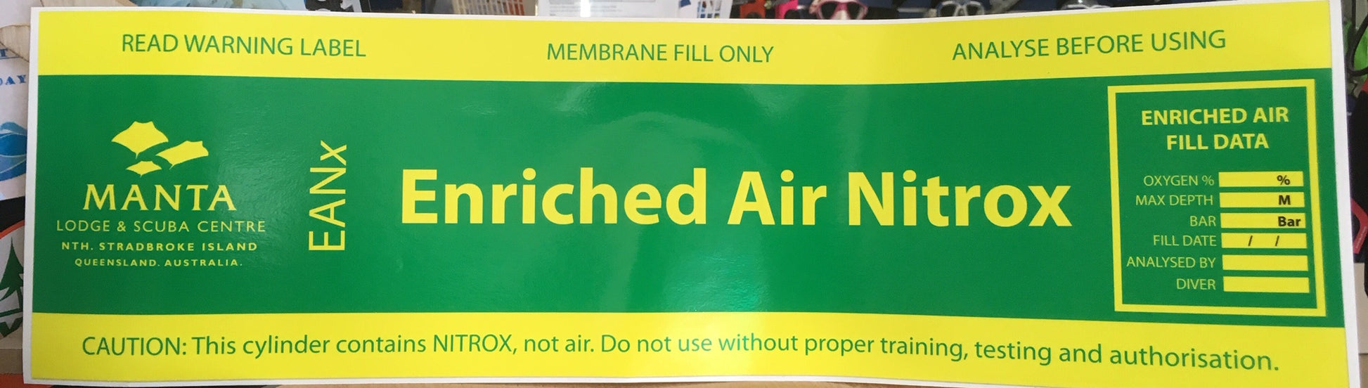 Nitrox sticker for tanks